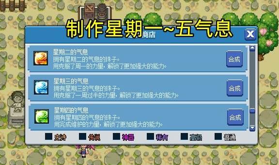 与城镇内的桃树对话6次,获取相关道具。进入格兰之森内,先与像素缔造者(下图,下方爱心)对话,再与像素黑暗武士对话。前往格兰之森凯诺区域,打碎地图左下角的绿色石块。在“克罗诺斯岛-boss区域”的右下角,黄色石头处站一分钟左右。