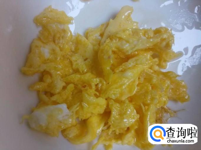 锅里热油,放入一颗蛋黄,炒散,盛出备用,一会用它做点缀,所以一颗就够了。
