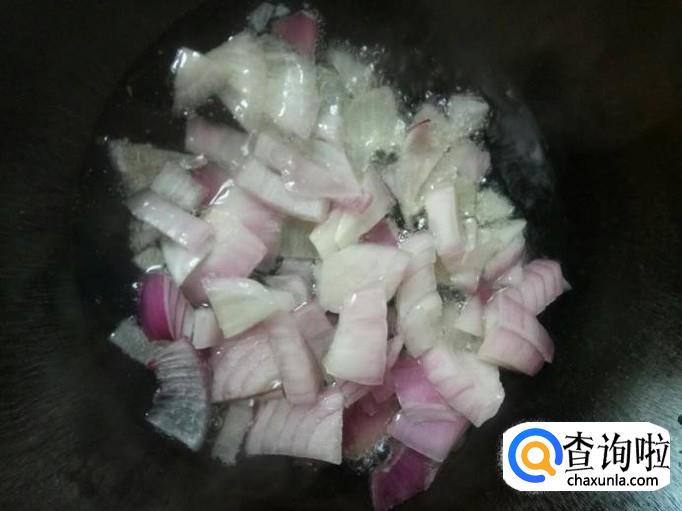 锅里再次放油,把洋葱倒进锅里,煸炒出香味。