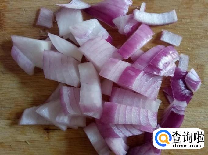 紫洋葱半个,切成小块备用,做配菜的时候紫色洋葱颜色好看。