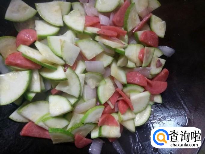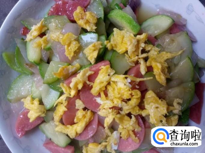 西葫芦、火腿肠、洋葱、鸡蛋、耗油