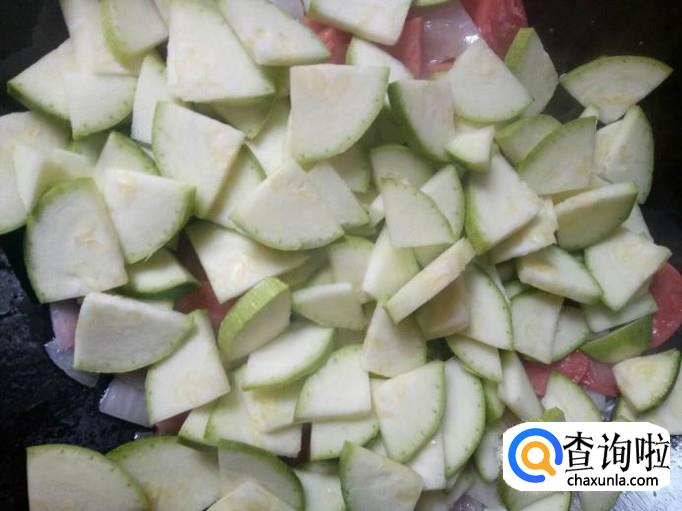 把西葫芦放进去,因为西葫芦很嫩很容易出水,所以要大火快速炒几下。