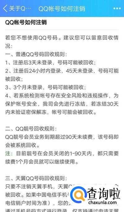 在这可以看到QQ在一定时间内不登陆就可能被收回,收回后就会注销,而且账号内所有数据都讲被清空不可恢复!现在不支持自主注销,只能耐心等待系统收回了。