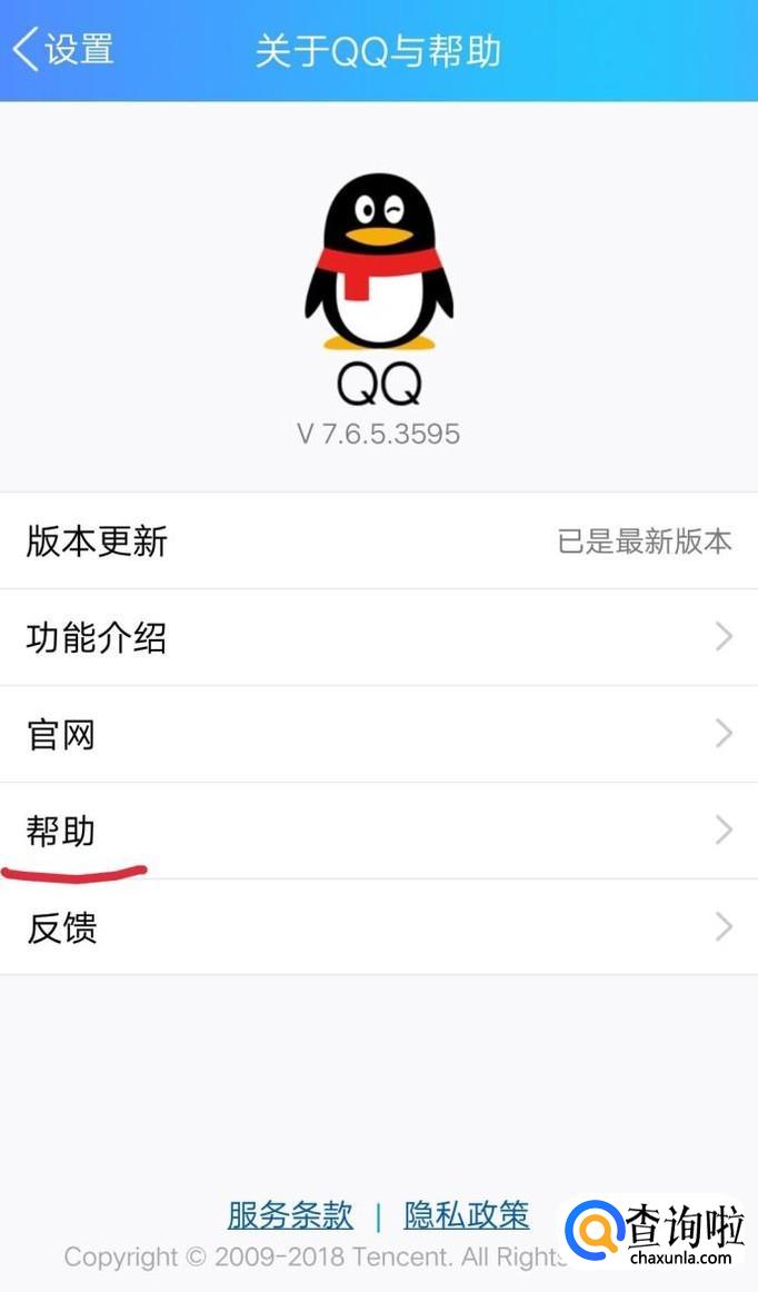 点击关于QQ和帮助……帮助,如图所示。