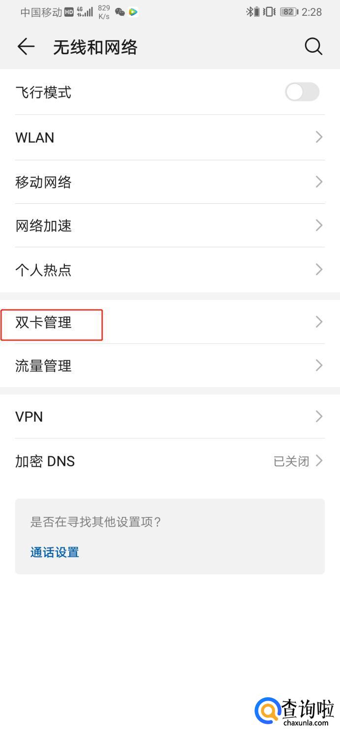 然后再选择页面中的双卡管理的选项。