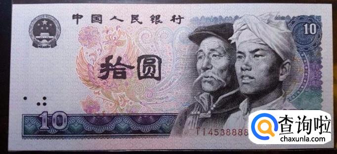十元面值的人民币,从右往左的顺序是汉族男人和蒙古族男人,一共是两个人。