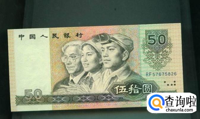 五十元面值的人民币,从右往左,依次是工人、农民、知识分子,一共是三个人。