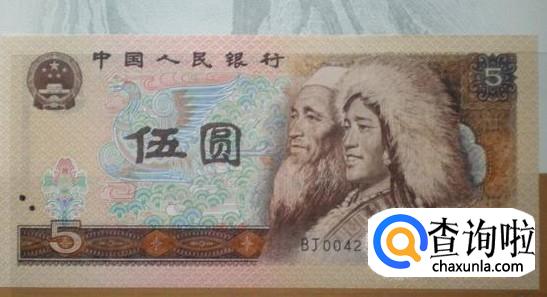 五元面值的人民币,从右往左的顺序是藏族女人和回族男人,一共是两个人。