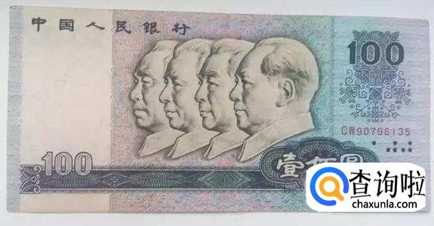 一百元面值的人民币,上面应该从右往左看,依次是毛泽东、周恩来、刘少奇、朱德。一共是四位伟人。