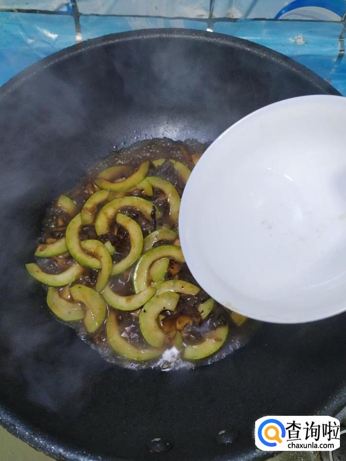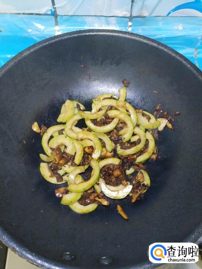将准备好的西葫芦片,倒入锅中,翻炒均匀,加入少许清水,慢慢的将汤汁收干。