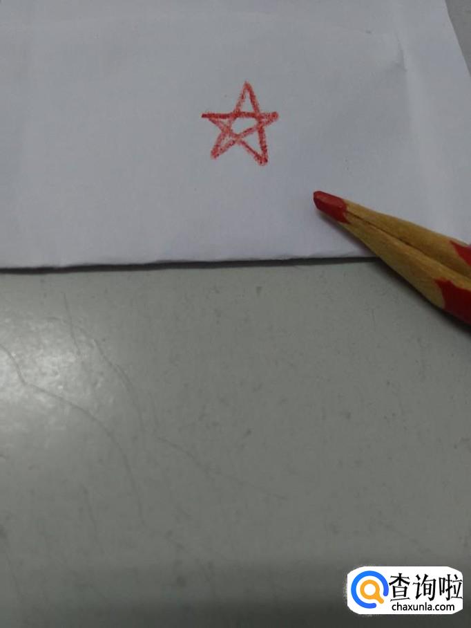 用红笔在剩余的纸上画一个五角星。