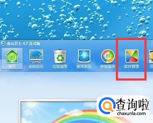 首先,我们打开安全卫士。在页面上方有一个软件管理,点击进入。
