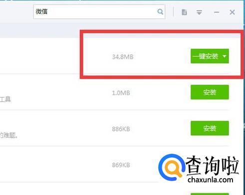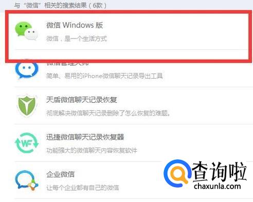 出现六个搜索结果,排在第一的软件就是我们要下载的微信Windows版,我们选择一键安装即可。