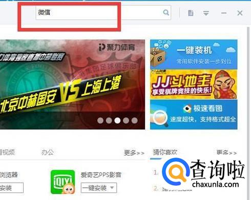 页面跳转后,我们在条形框输入“微信”二字,敲下回车键。