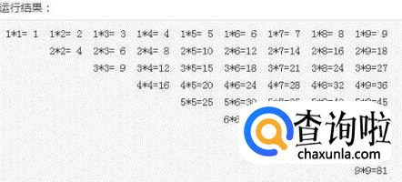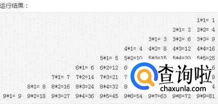 九九乘法表共9行9列,重点考察for循环的掌握情况。