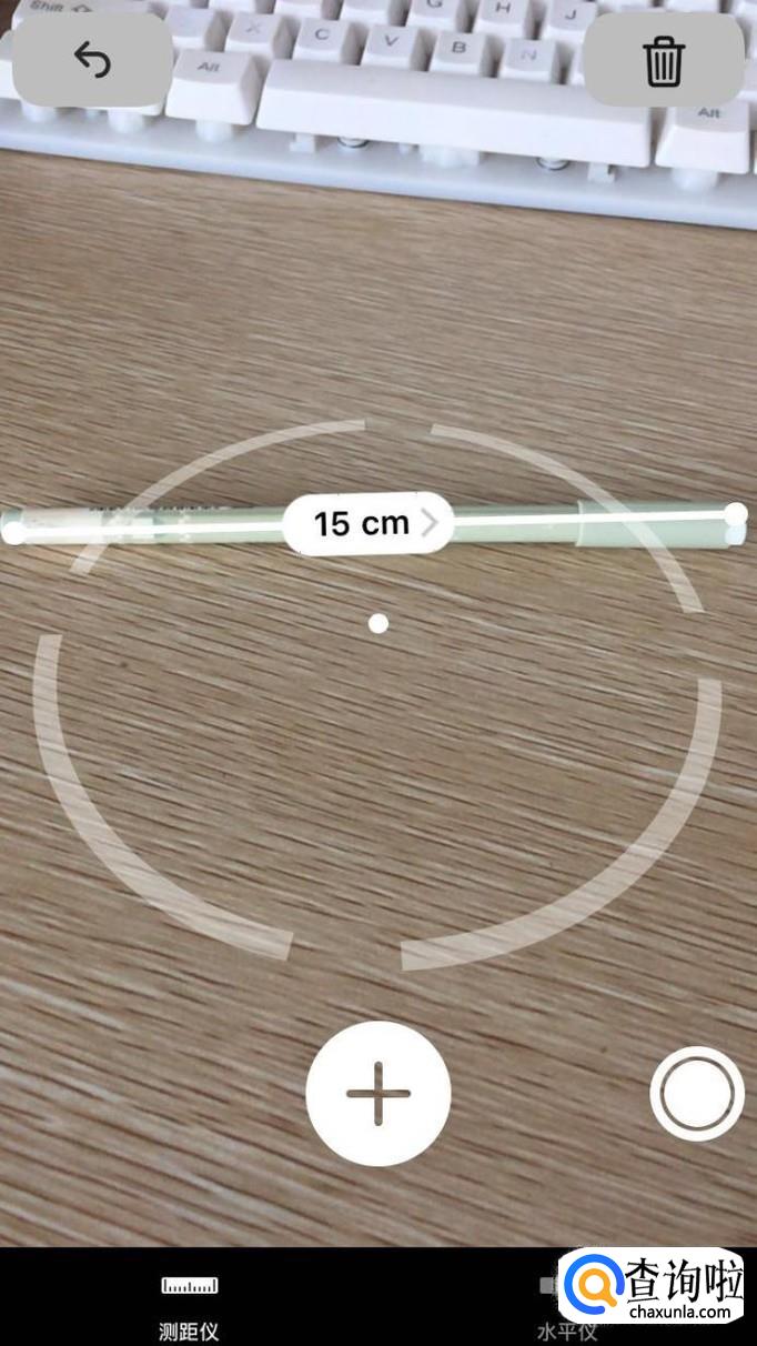接着,移动到测量物体的终点位置后,点击按钮+,表示终点的位置,即测量结束。