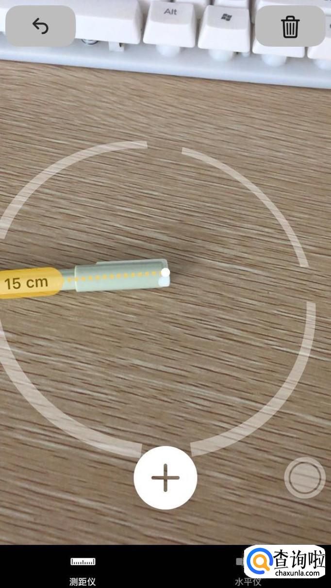 添加点完毕后,水平移动手机,保持与要测量的物体同意水平,在移动的过程中就可以看到距离的单位。