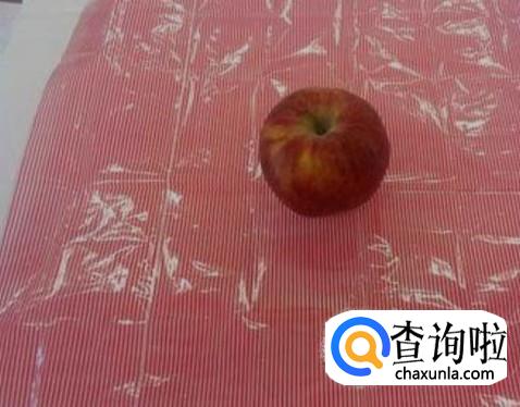 把包装纸的四个角一齐拉上来,完整的包裹住苹果。
