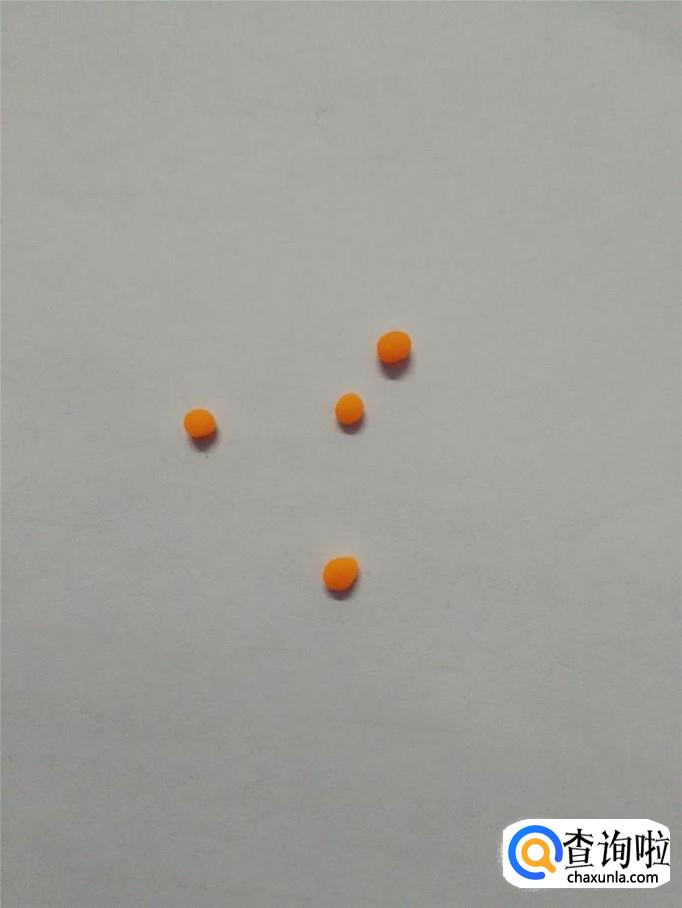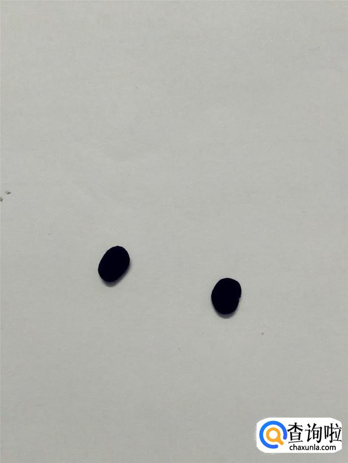 用白色团四个极小的球,两只眼睛分别粘上两个小白球,当作眼睛里的光。