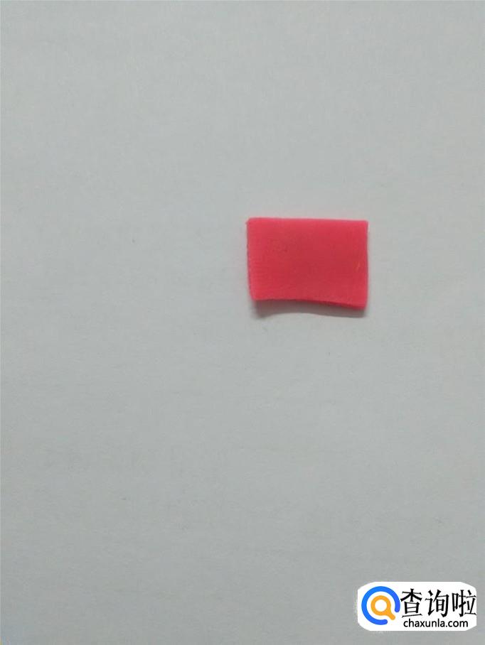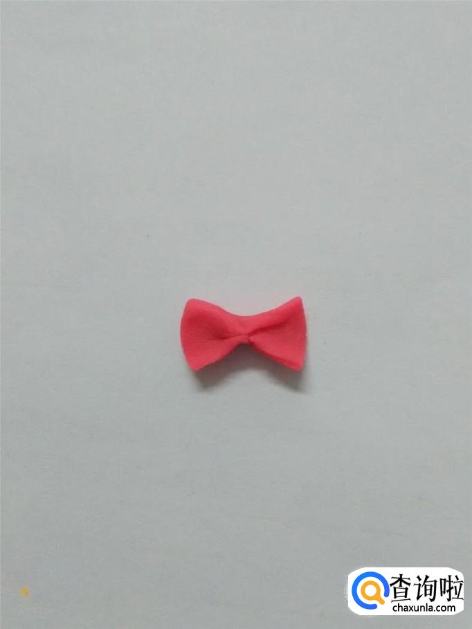 用一块粉红色捏成长方形,用手从中间捏紧,做成一个蝴蝶结。