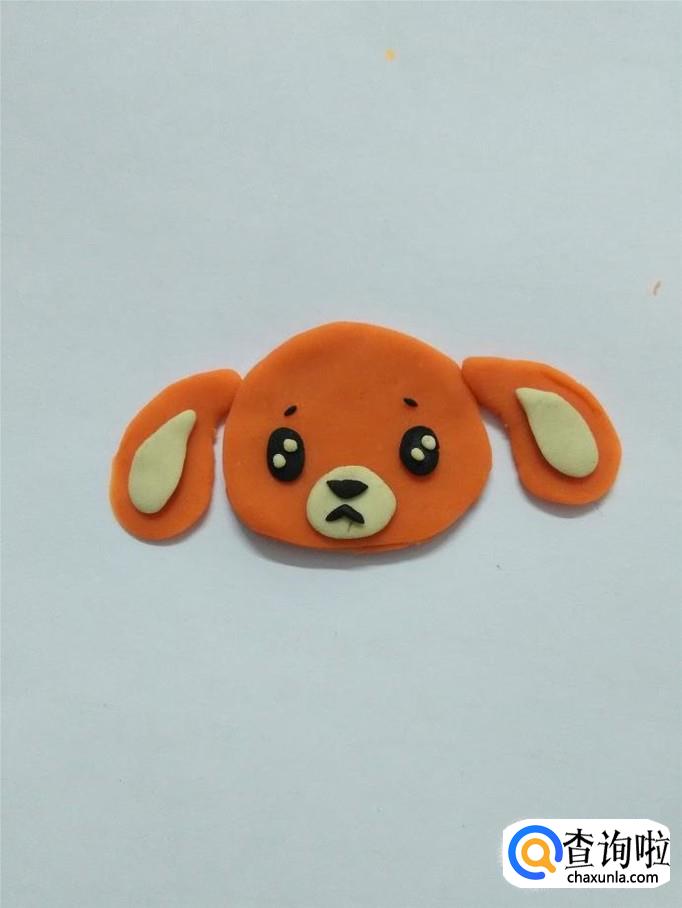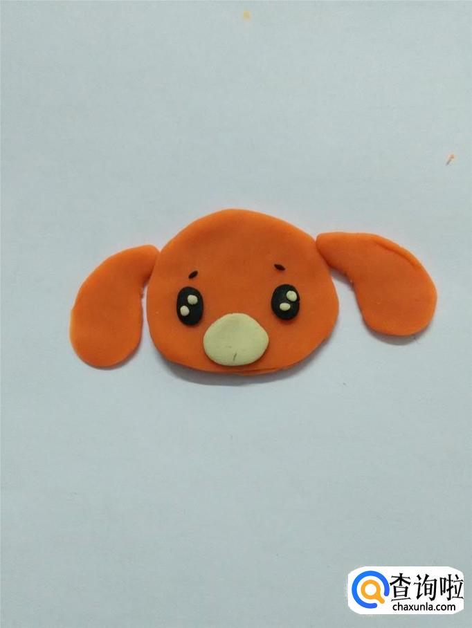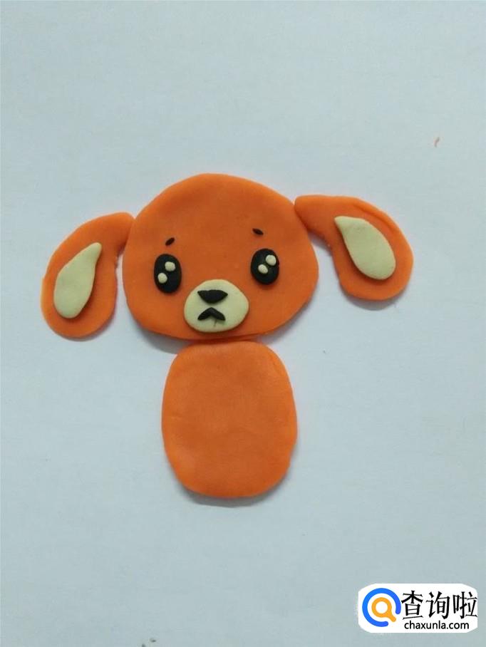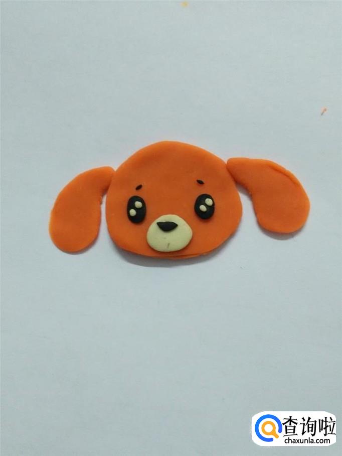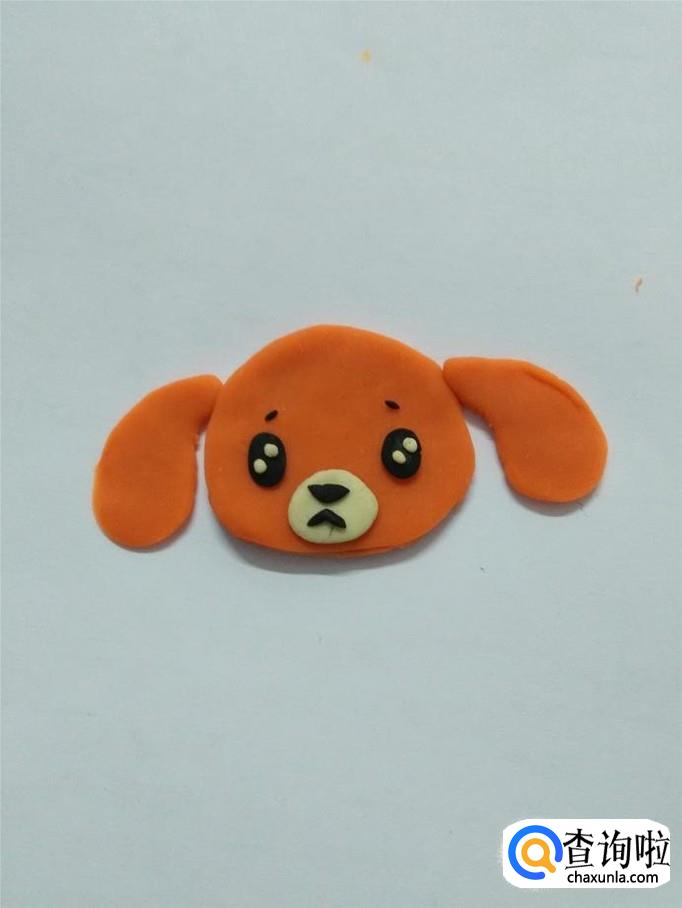 用白色捏一个椭圆形,粘在小狗眼睛下面,当作嘴部的白毛。