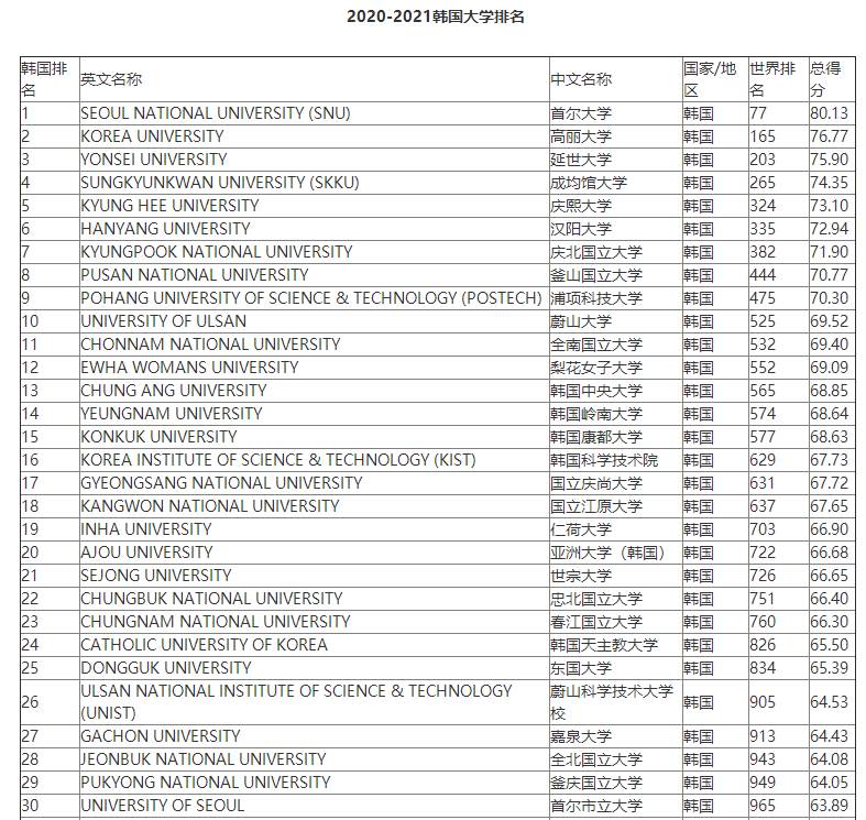 成均馆大学名列2022QS世界排名第97名 ,2021泰晤士高等教育世界大学排名第101名 。