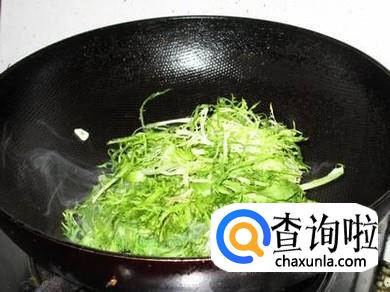 接着葱姜蒜爆香,接着把清洗干净的苦菊放入锅里翻炒,最后加入一些盐翻炒出锅就可以。