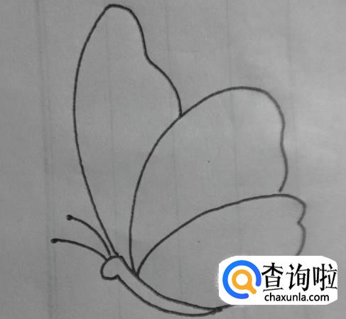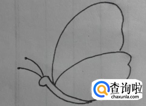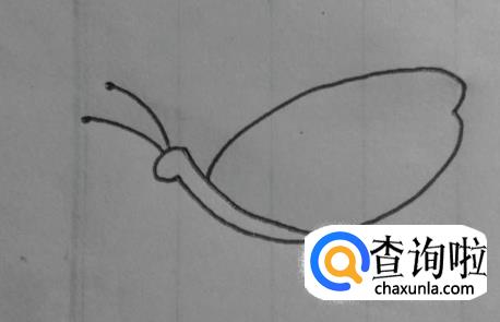 先在画纸上画出蝴蝶的头和身体,如下图所示。