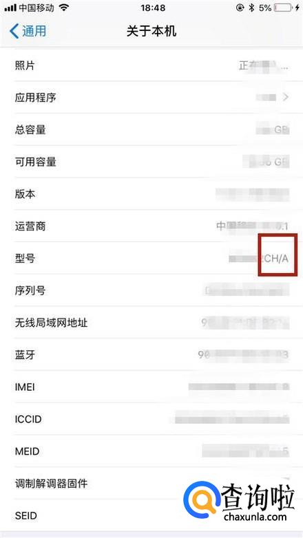 最后查看型号后面的三个字母就可以推算出这台苹果手机的发行地了。CH/A代表大陆国行、ZP/A代表港版、LL/A代表美版。