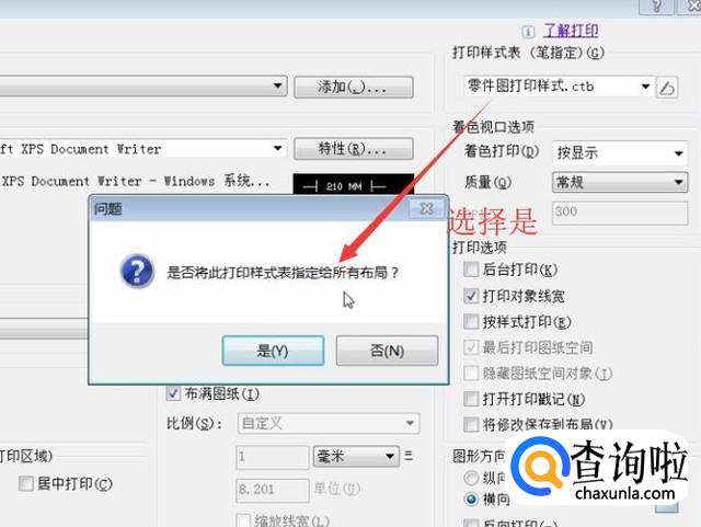 接着会弹出如下图所示的提示,我们需要选择是按钮,将此打印样式加给所有的布局,如下图所示
