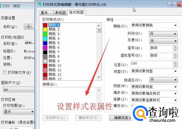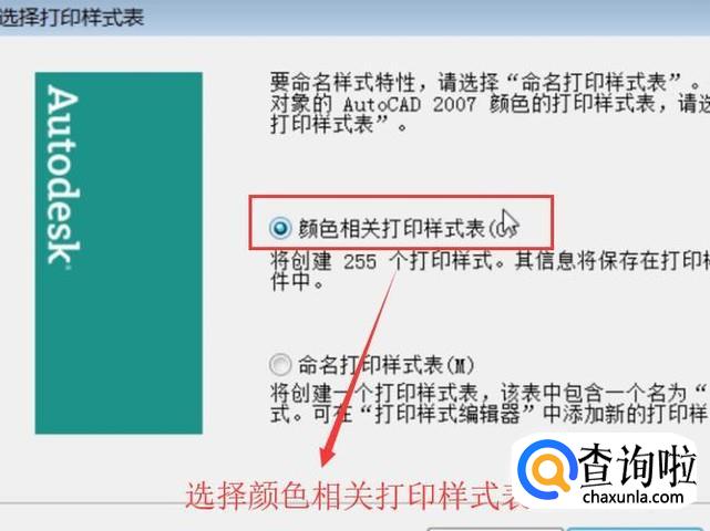 接下来需要选择颜色相关打印样式表选项,如下图所示