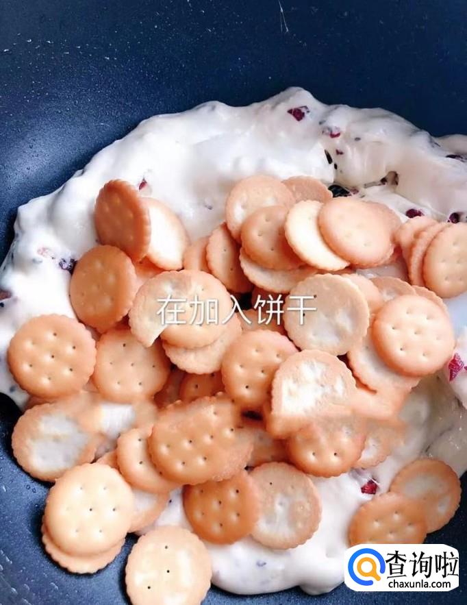 然后把所有的饼干倒入锅中翻拌均匀,如下图所示。