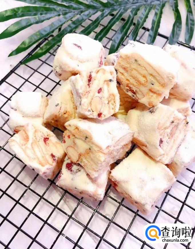 等到雪花奶酥凉透后,切成自己想要的大小,如下图所示。