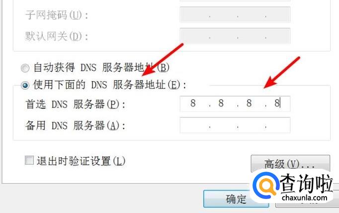 把dns手动改成8.8.8.8,点击确定按钮就行了。