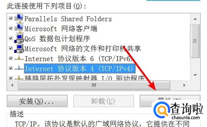 选中ipv4协议,点击‘属性’按钮。