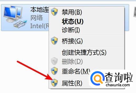 打开页面,右键点击‘本地连接’,然后点击‘属性’