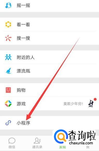 进入之后,找到“小程序”,点击并进入,如图所示。