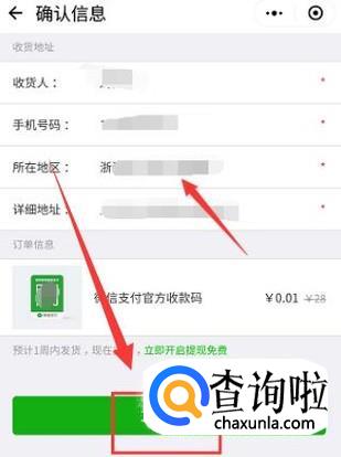 进入之后,填写收货地址,进行支付即可,如图所示。