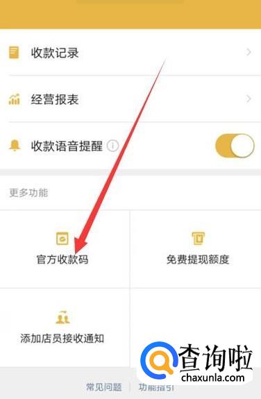 进入之后,点击“官方收钱码”。点击并进入,如图所示。