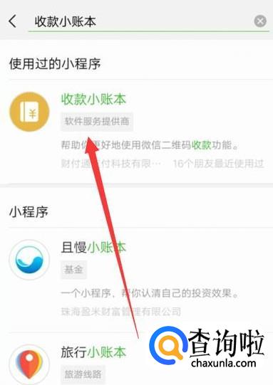 进入之后,搜索“收款小账本”,点击并进入,如图所示。