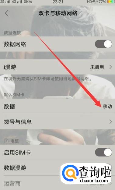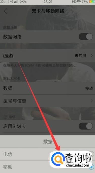 进入之后,选择“双卡与移动网络”,点击并进入,如图所示。