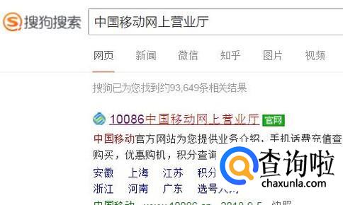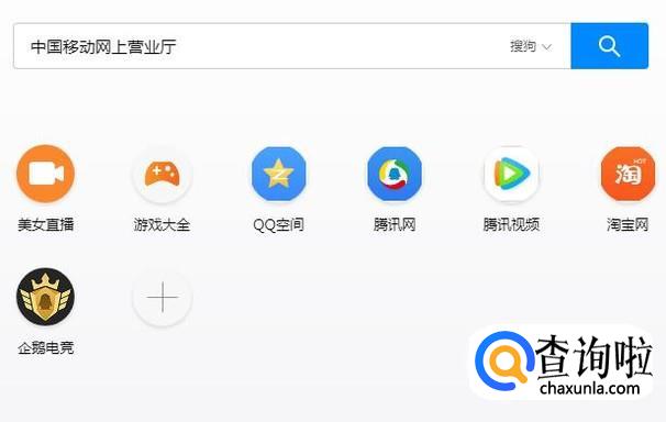 首先,在搜狗浏览器中输入中国移动网上营业厅并点击回车键,如下图所示。