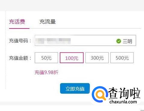 接着选择你要充值的金额并点击立即充值,如下图所示。
