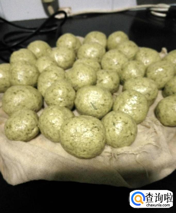 用和匀后的粉团用双手使劲不停的翻转揉按,直至所有成分融为一体,看不到成型的艾草为止,和粉的时间越久,做出的米果越有嚼劲。将粉团均匀分成饺子般大小,用掌心压扁,加上备好的熟豆粉(豆粉太多的话会有蒸的时候可能会溢出来)再用双手轻轻和匀成球形。