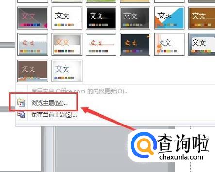 在设计页面,点击主体下面的下拉箭头,然后点击“浏览主题”,如图所示。