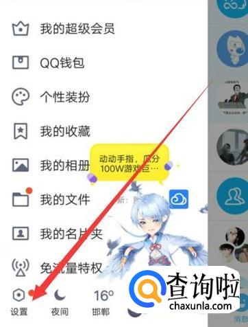 打开手机,进入手机QQ,找到“设置”,点击并进入,如图所示。