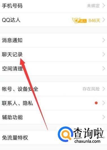 进入之后,点击“聊天记录”,进入下一页面,如图所示。