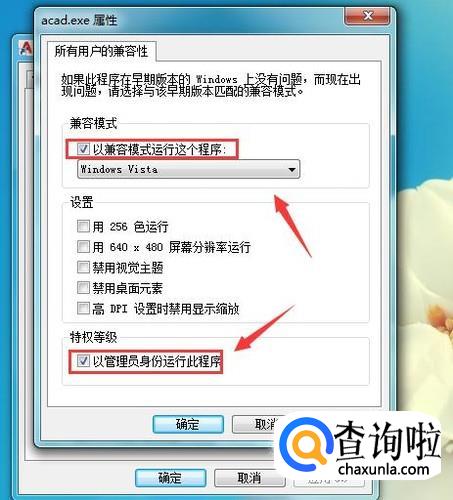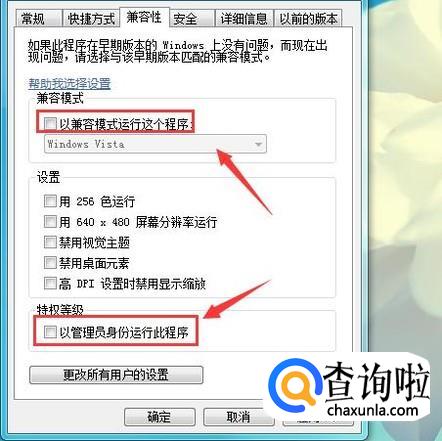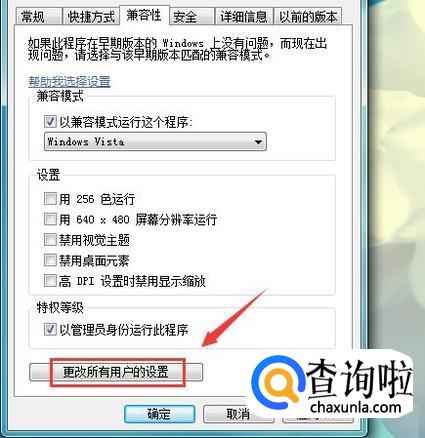 点击属性在弹出的对话框内找到兼容性选项,点击该选项在其内设置如图所示: