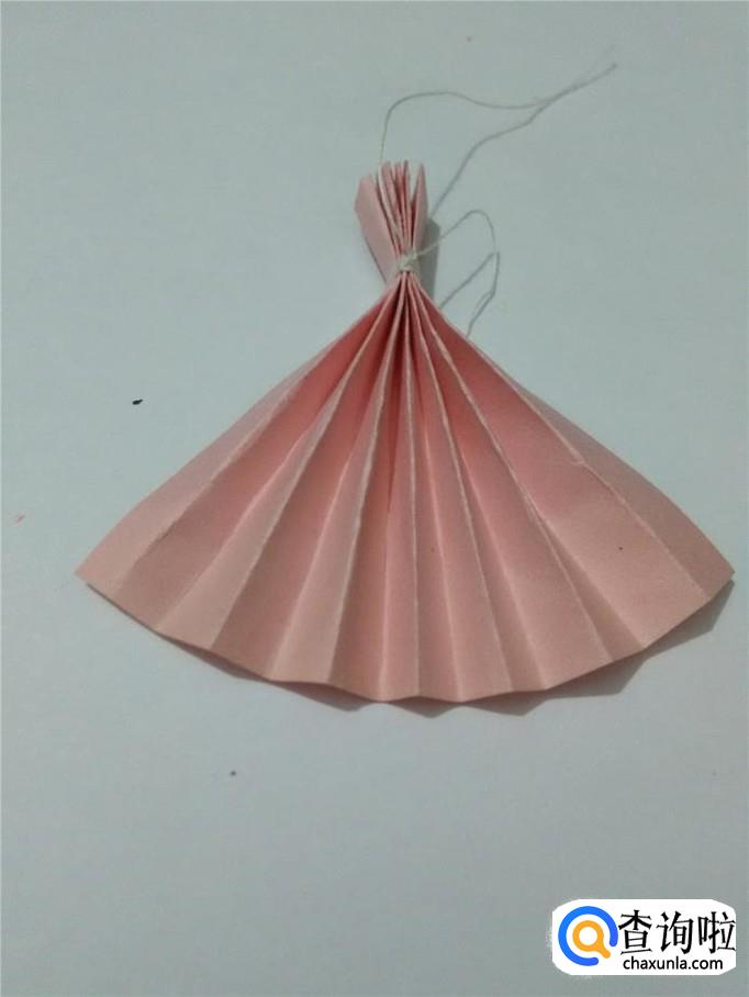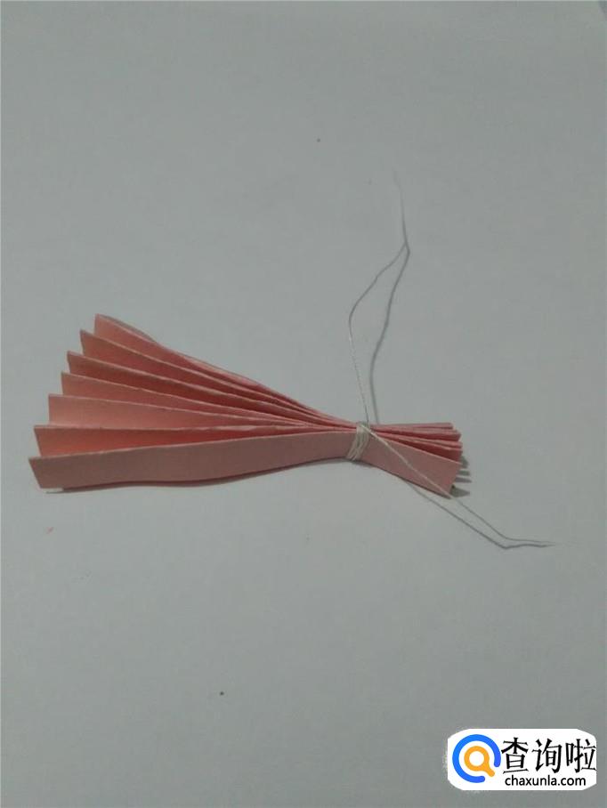 用线把纸的一端扎好。