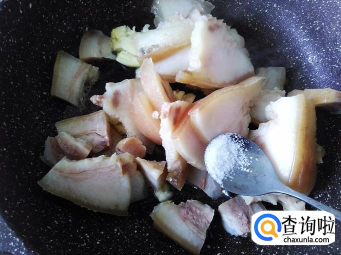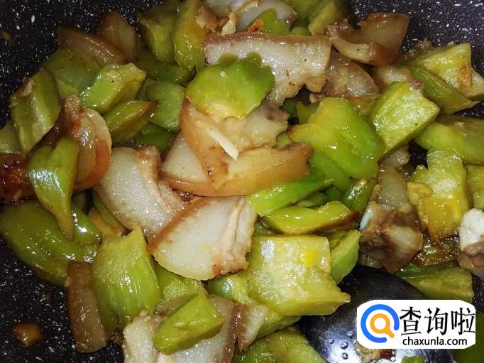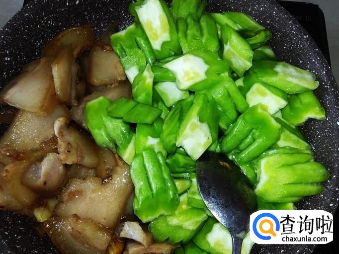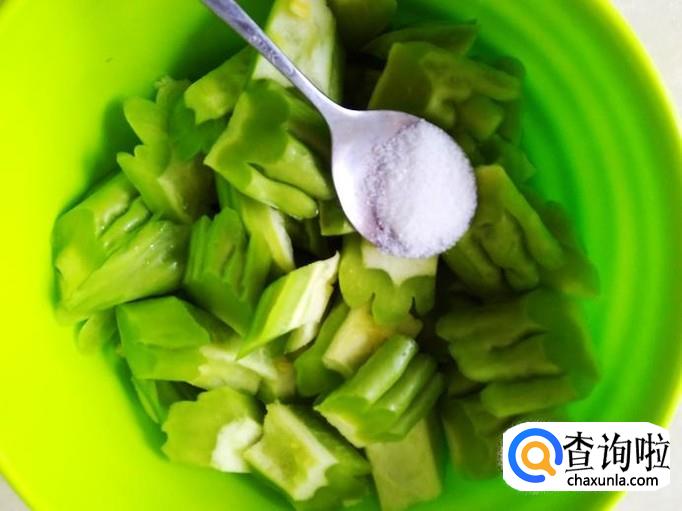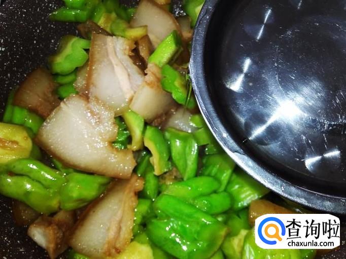 然后下苦瓜进去加适量的白糖翻炒至苦瓜变软。